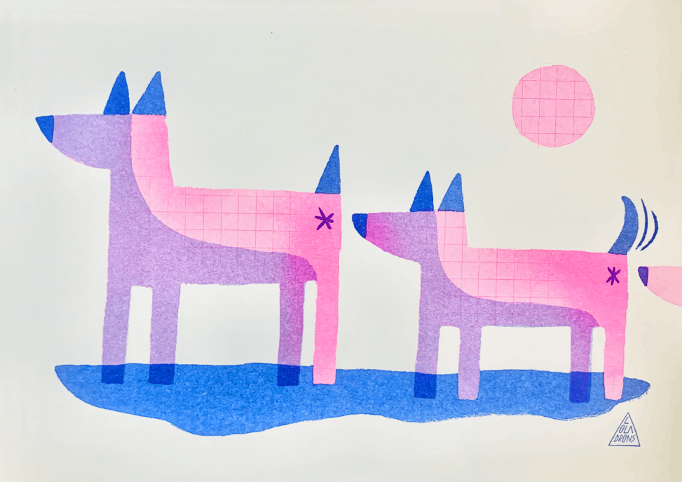 Perros al sol “Perros al sol” by Lola Drons. “Perros al sol” – Risography by Ultimo Mono. 14,8 x 21 cm. Price: 8 € Available In Artwork ← Previous post Next post →